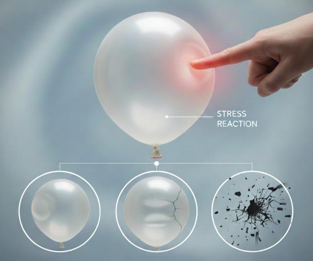 Một hình ảnh ẩn dụ dễ hiểu thường được sử dụng là chiếc bóng bay. Nếu coi tâm trí và cơ thể chúng ta là một quả bóng bay, thì áp lực từ bên ngoài(như ngón tay ấn vào) chính là tác nhân gây stress. Sự biến dạng của quả bóng chính là phản ứng stress. Nếu áp lực vừa phải, quả bóng có thể đàn hồi trở lại. Nhưng nếu áp lực quá lớn hoặc kéo dài liên tục, quả bóng sẽ mất khả năng phục hồi hoặc thậm chí bị vỡ.