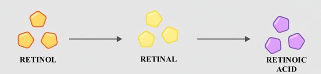 Nhóm dẫn xuất của Vitamin A, gọi chung là Retinoids, không hoạt động ngay mà phải trải qua một chuỗi chuyển hóa trong da để đạt được hiệu quả tối đa: